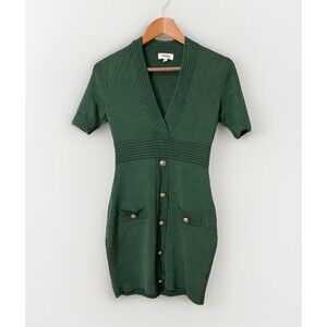 L’AGENCE Kate Dress XS/T Green Knit Ribbed Faux Button Short Sleeve Chic