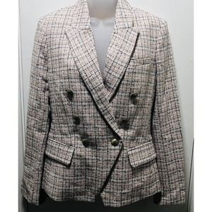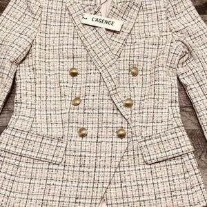 NWT L’AGENCE Kenzie Double-Breasted Size 2 Tweed Blazer ~ Chest Size 34” Pink & Grey