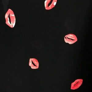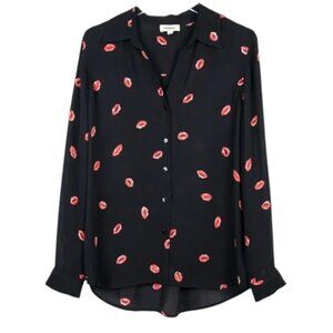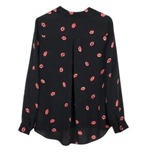 Rare L'AGENCE Kiss Print Silk Nina Blouse (seen on Real Housewives of Orange County). Retail $449. Semi-sheer silk. Button closure. Button cuffs. 100% silk. Dry clean. Suitable for many occasions and year-round wear.