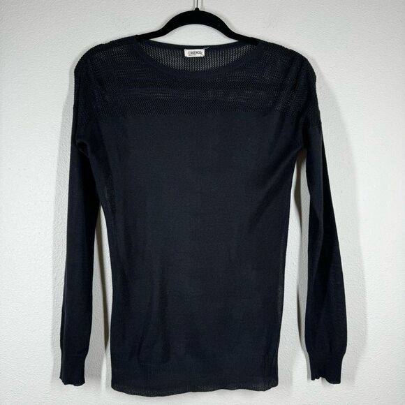 L’AGENCE Long Sleeve Black Crewneck Sweater Sheer Open Knit Women’s Size XS
