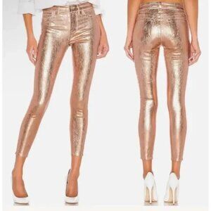 L'AGENCE 'Margot' Coated High-Rise Skinny Jeans, Light Rose Gold Foil
