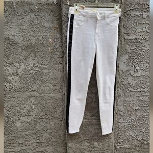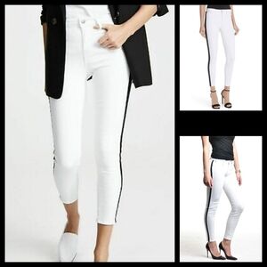 L'AGENCE Margot Crop Skinny Jeans White Black Stripe
