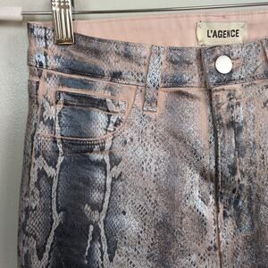 L'AGENCE Margot High Rise Skinny Jean Petal Snake Skin Crackle Foil Women's 27