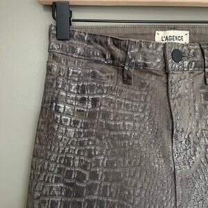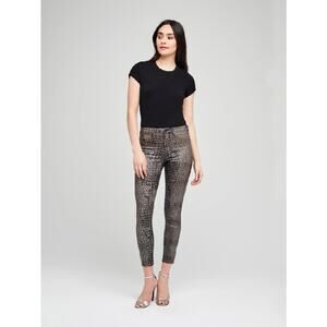 L'AGENCE Margot High Rise Skinny Jeans In Chestnut Black Croc Foil Size 26