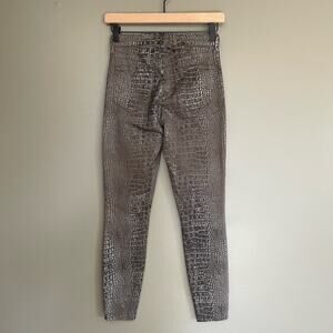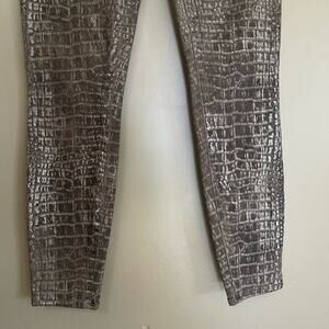 L'AGENCE Margot High Rise Skinny Jeans In Chestnut/Black Croc Foil, Size 26, High Waist, High Waisted, Croc Print, Brown Taupe Tan Grey Color with Silver Metallic Contrast