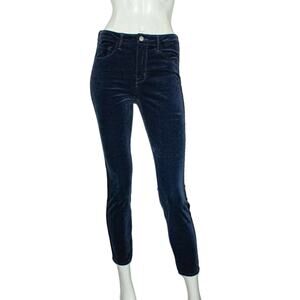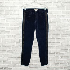 L'AGENCE Margot Velvet Satin Stripe Jeans In Blue Marine Size 27