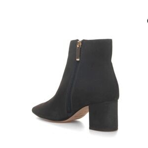 Velvety suede softens the streamlined silhouette of a chic pointy-toe bootie perched on a block heel.