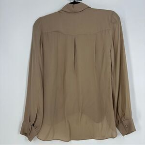 L’AGENCE Neutal Tan Chantarelle Silk Chiffon Longsleeve Faux Wrap Blouse Sz XS