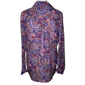 L’AGENCE Nina Purple Multi Vintage Paisley Silk Button Up Blouse Shirt