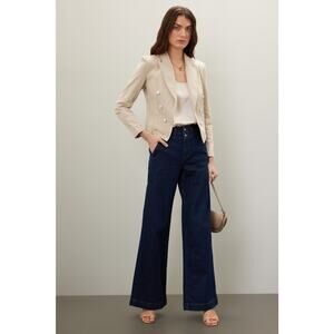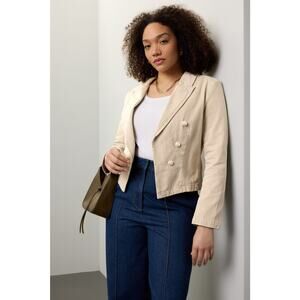 L’AGENCE Off-White 100% Cotton Structured Double-Breasted Wayne Jacket Blazer M