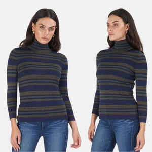 L'AGENCE Olive Bronze Stripe Harlee Turtleneck Sweater XS