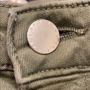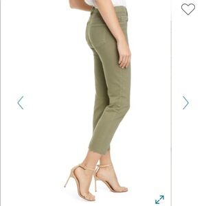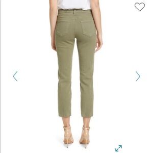 Freshen up your denim wardrobe with these fraying olive-green jeans done in a classic slim silhouette and softened with a bit of stretch. Fit: this style fits true to size. 24=00- Zip fly with button closure - Five-pocket style - Slim fit - High waisted - Frayed raw edge hem - Approx. 26" inseam, 14" leg opening; 10" front rise Made in USA