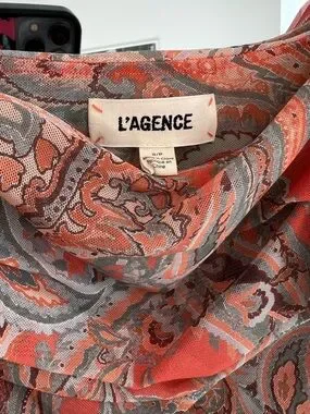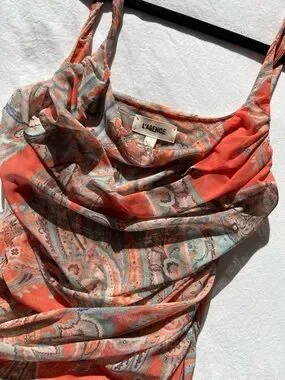 L'AGENCE Rasha Paisley Ruched Mesh Tank