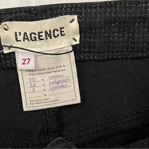 LAgence revolve Black Silver metallic check skinny pants Front faux pockets denim fabric with metallic detail throughout