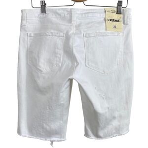 L'AGENCE Ripped Distressed Custom Cut off Hem Denim Shorts in White Size 30