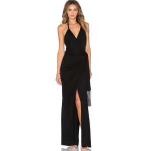 L'AGENCE Sabrina halter maxi dress gown black fringe, $625 Retail, Like New
