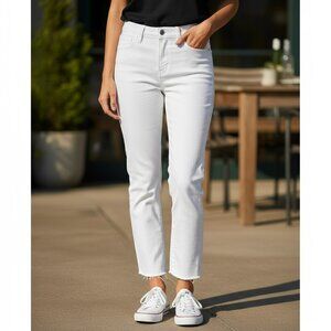 L’AGENCE Sada Jeans 23 | Cotton-Stretch | White | Mid-Rise Cropped Slim, Raw He