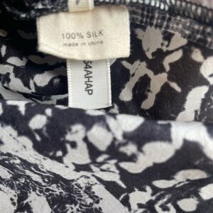 L’AGENCE Silk Button Down Shirt Black White Print Patchwork Blouse Top 100% Silk