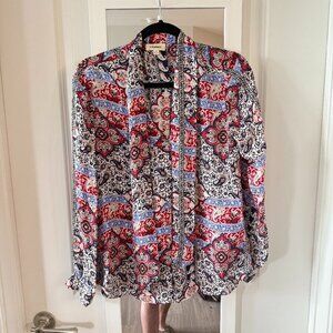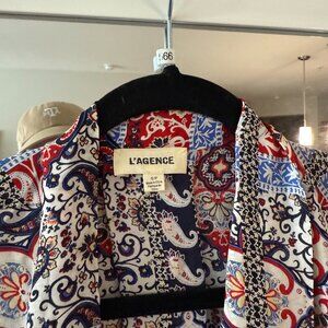 L'AGENCE Silk Neck Tie Blouse Size Small Color Red Blue White Black