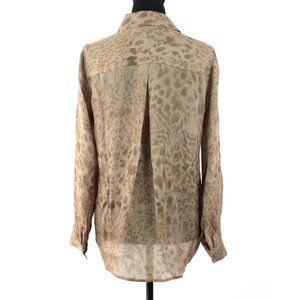 L'AGENCE Silk Taupe Brown Animal Print Semi-Sheer Collared Blouse NEW XS