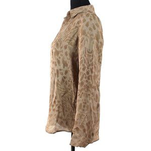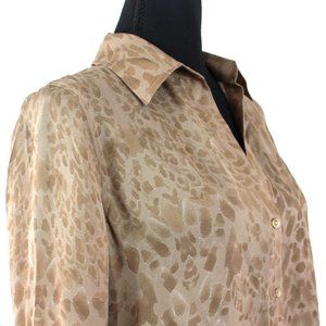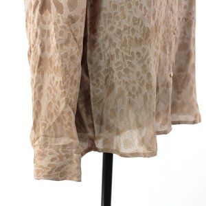 L'AGENCE Silk Taupe Brown Animal Print Semi-Sheer Collared Blouse