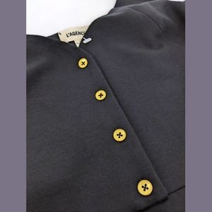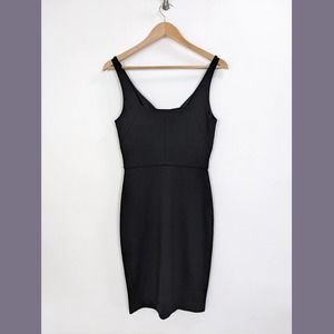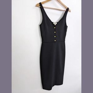 L'AGENCE Size 2 Womens Black Tank Sheath Midi Dress with Gold Tone Button