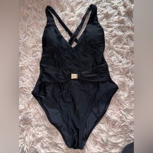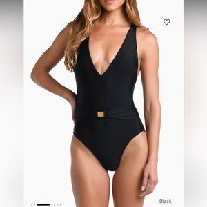 L'AGENCE Solids Lisa Plunge One-Piece Swimsuit in black Medium