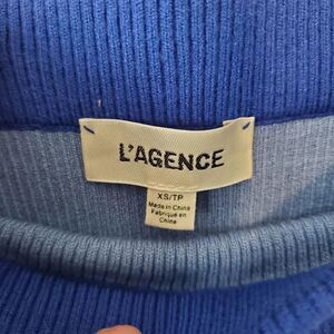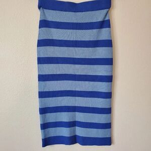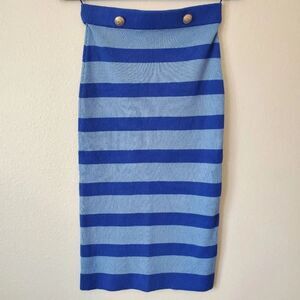 L'AGENCE Blue Striped Knit Pencil Midi Skirt