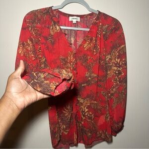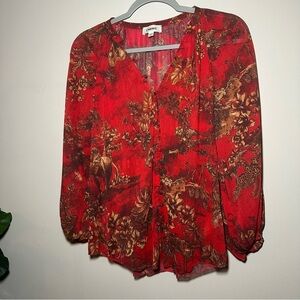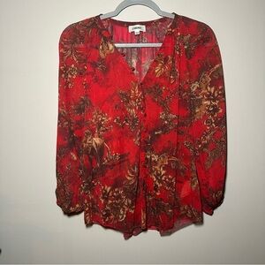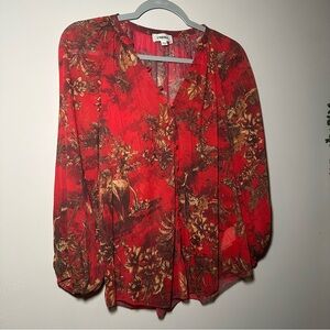 L'AGENCE Teagan Red Jungle Toile Chiffon Novelty Button Down Shirt Blouse XXS
