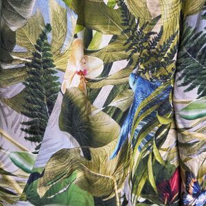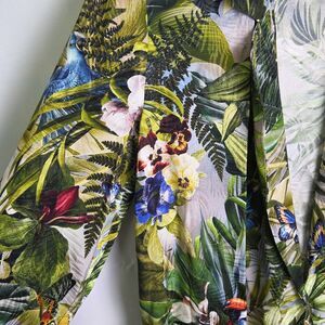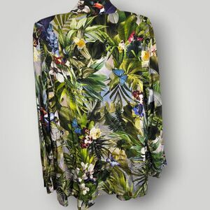 Vibrant tropical print blazer with botanical and floral details