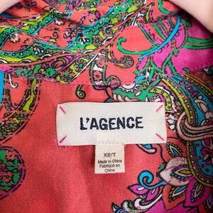 L'AGENCE Tyler Paisley Print Silk Shirt Rhodamine Bright Pop Size XS Pink