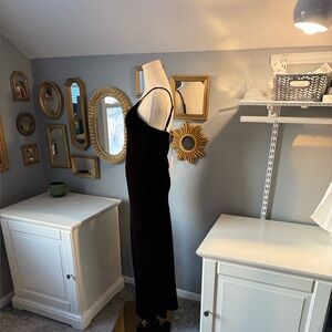 Ok so the mannequin it looks floor length but this is a midi. Lined and form fitting I believe this is the SERIDIE slip dress style. Gorgeous cut. Dry clean only. See tag for material makeup.