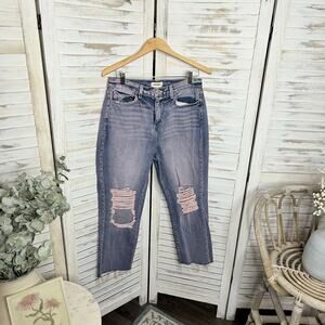 L'AGENCE Women's 29 Adele High Rise Cropped Distressed Pink Denim Jean Fallbrook