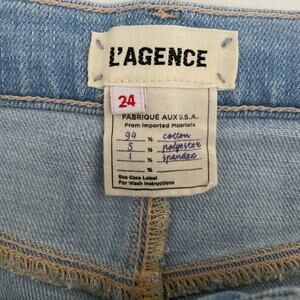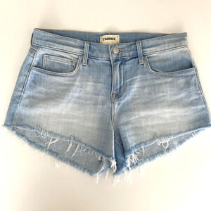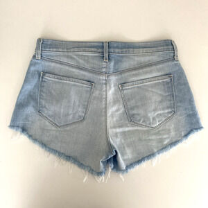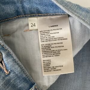 L'AGENCE Women's Mid Rise Audrey Shorts Belmont Blue Size 24 Frayed Raw Trim XS