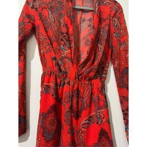 L’AGENCE Arbell paisley tie waist romper sheer top long sleeve size 0