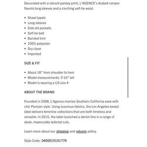 L’AGENCE Arbell paisley tic waist Romper long sleeve 0