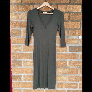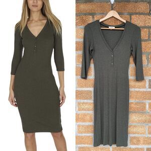 L'AGENCE Aurora Heathered Olive Henley Dress