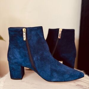 L'AGENCE Jeanne Block Heel Suede Velvet Bootie, Size 8 (Euro 38), Blue, NWT
