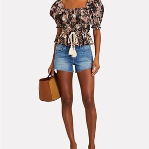 The label's Audrey shorts have a covetable lived-in feel with raw-edge hems in their Lancaster denim. Belt loops. Zip fly and button closure. Five pocket styling.