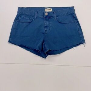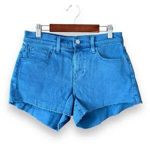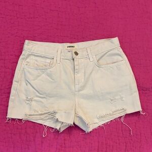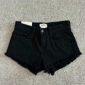 L'AGENCE's high-rise Jazz denim shorts are elevated by rolled cuffs and a raw hem.