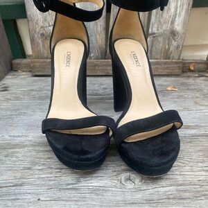 L'AGENCE's Cecile sandals are crafted of suede and anchored with a tall, block heel. This statement-making pair is finished with a tonal ankle strap and platform sole.
