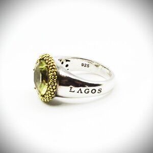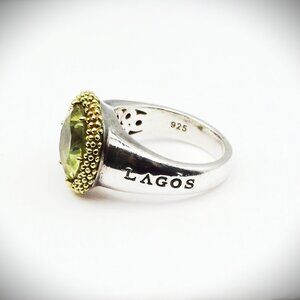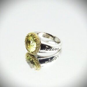LAGOS Caviar Sterling Silver 18K Yellow Gold & Citrine Cocktail Ring Size 8.75