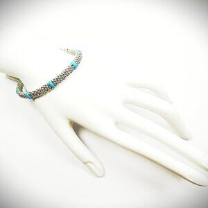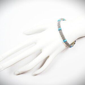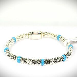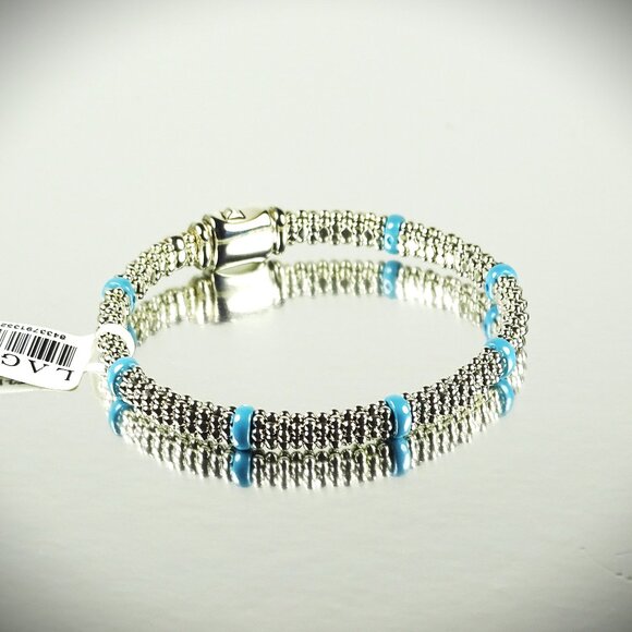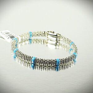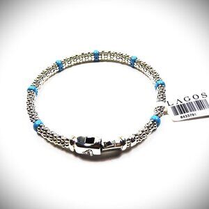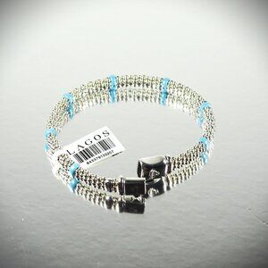 LAGOS Caviar Sterling Silver Ceramic Blue Stations Bangle Bracelet