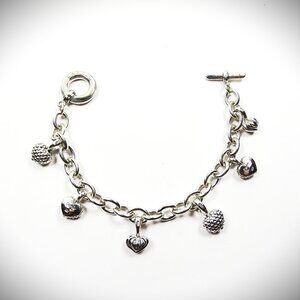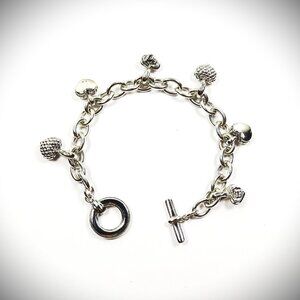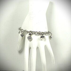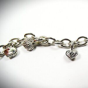 Beautiful like new Steven Lagos Caviar sterling silver & 6/8"x0.5" six Heart Charms bracelet is 3 approx. 6.5" long with toggle clasp.