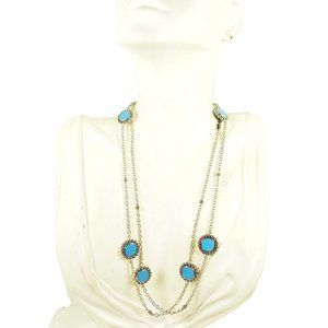 LAGOS Maya Sterling Silver Blue Turquoise Circle Stations Long Necklace
