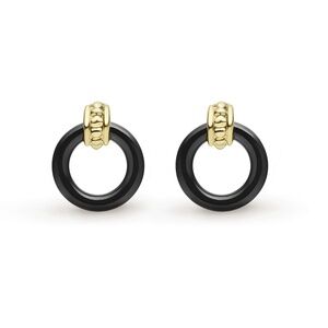 LAGOS Meridian Black Ceramic Circle Drop Stud Earrings Door Knocker 18K Gold
