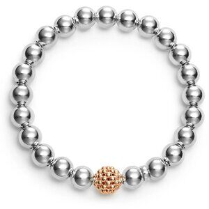 Lagos Signature Caviar Sterling Silver Stretch Bracelet w 18k Rose Gold Caviar center beaded accent