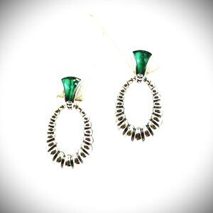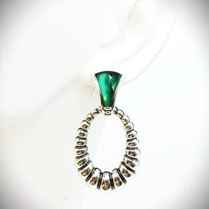 Gorgeous Steven Lagos malachite doublets, sterling silver, 18k gold posts, fluted oval, dangle earrings are 6/8" wide, 1.5"long, with butterfly fastening for pierced ears.