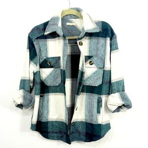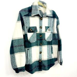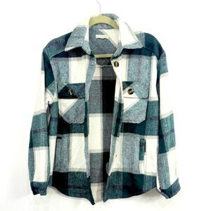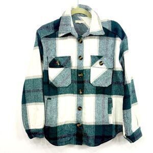 L.A. Hearts Green White Plaid Fuzzy Flannel Button Up Shacket Coat