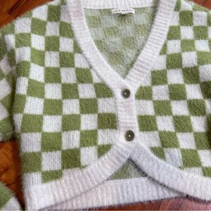 L.A.Hearts cropped cardigan sweater 💖 green and white checkerboard 💖 size XS